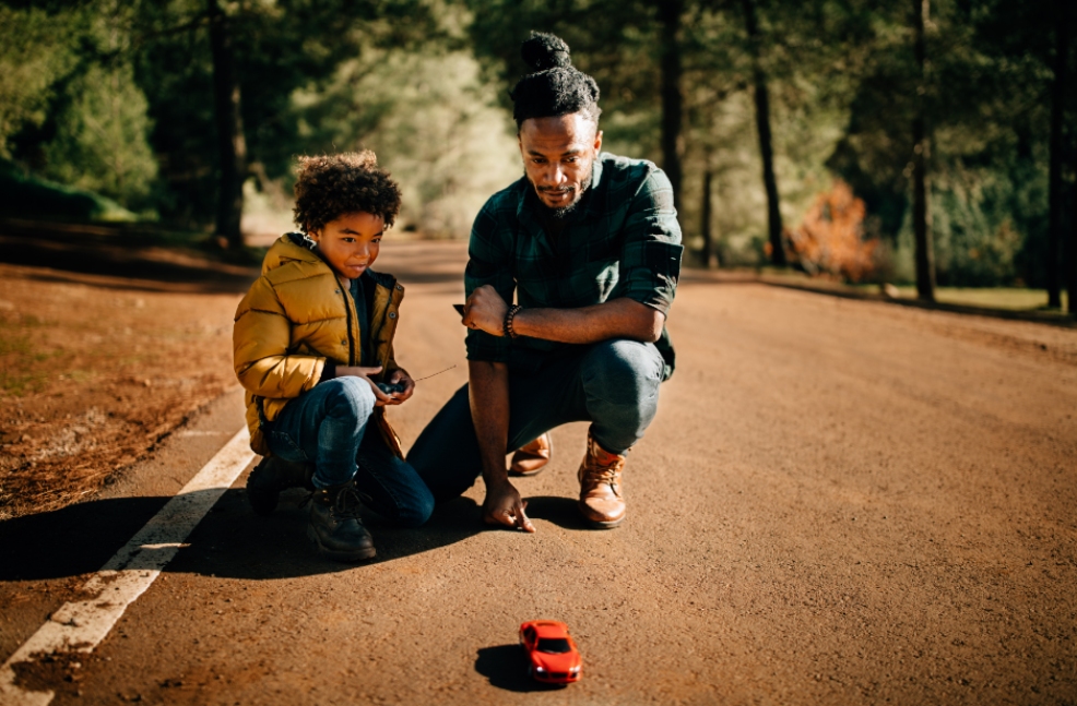 Now this is quite a new one for me. I recently saw a father and son in our local woods playing with a remote control car, and I was blown away. I quickly asked them what model it was and went back to research and what became clear was that there was this whole world that I didn't even know existed. So, I quickly looked a bit more into prices, not knowing whether this would be a fad or something of interest. I picked a remote control car at a fairly low price point just to see what was what. Having bought the remote control car and taking it out with Oscar it's clear that this was going to be something which we could really bond over and have a lot of fun with. So I then bought another one for me, obviously. And the two of us now have enjoyed numerous days, many many hours taking our remote control cars out and playing with them in our local woods together. And it's experiences like this which I really truly believe, Oscar will remember for life. I'm just so pleased that I found it.