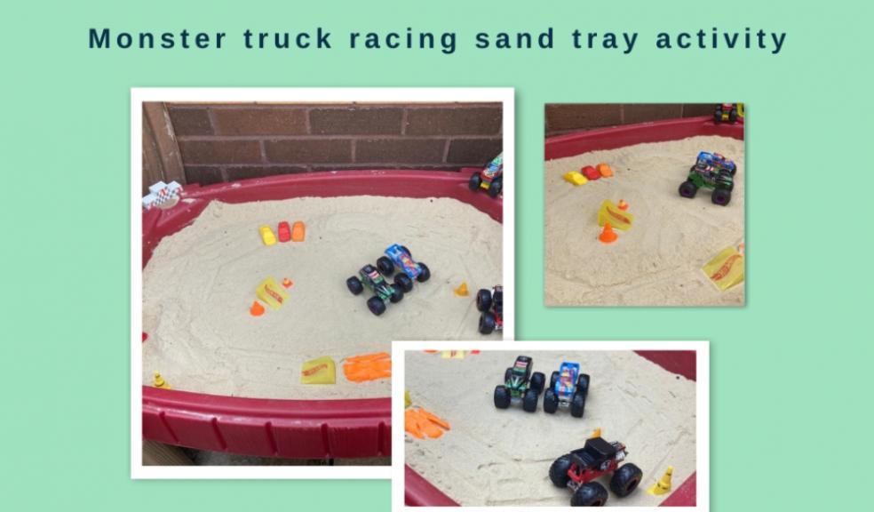 Monster truck racing sand tray activity