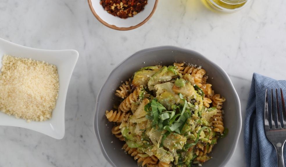 Fusilli with Shaved Brussels Sprouts, Basil & Parmesan