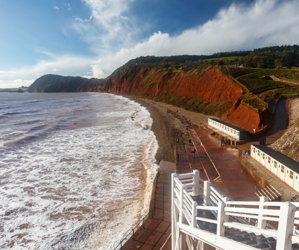 One of two beaches in Sidmouth, this one has a staircase leading up to Connaught Gardens and usually calm seas making it ideal for a gentle swim or paddle. With a mix of sand and shingle and those iconic red cliffs, this is also a good beach for hunting fossils – just make sure to leave them where you find them.