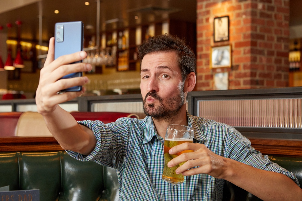 picture of dad taking a selfie with a pint of beer at frankie and benny's