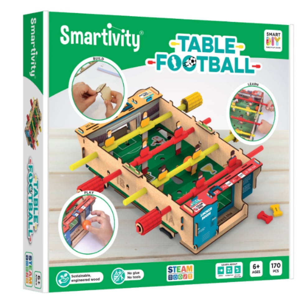 Want to play football whenever you want? Well, now you can... with Smartivity Table Football! Having reimagined your favourite sport as a DIY tabletop game, this cool toy will keep you and your friends competing for a long, long time. With 4-players in a team, the slider scoreboard will help you keep track of the goals you scored, and if you are the highest scorer, your name will be put up on the leader board.