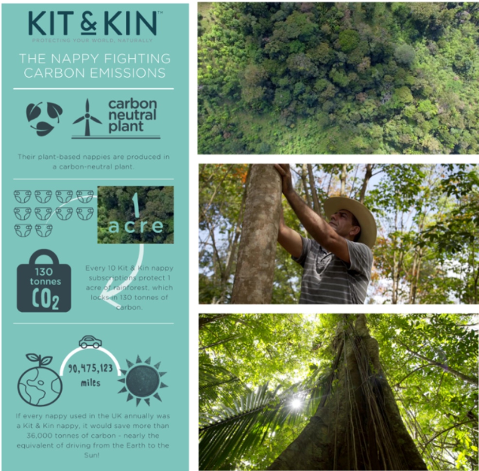- As well as its carbon conscious production, Kit & Kin is committed to locking in millions of tonnes of Carbon Biomass through its efforts to safeguard the rainforest - with every subscription personally protecting five trees, which will never face deforestation, helping to maintain this vital ecosystem for generations to come.