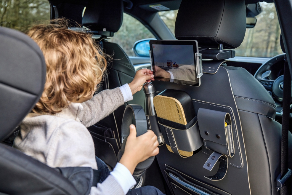 Shaped to fit neatly against the contours of the driver and front passenger seats, custom-made seat tidies feature several storage spaces including a drinks holder, bento box for snacks and a rattle-free pen holder. With 44% of UK parents using a reward chart to motivate their children, the seat tidies also feature two large pockets with a chart for each child to encourage them to keep the car tidy***.