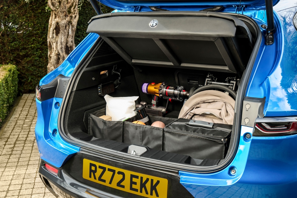 For rubbish like sweet wrappers or tissues, the Tonale Edizione Bambini comes with a six-litre, touchless bin which is secured to the footwell behind the centre console and can be removed completely if desired. For cleaning the interior on the go, a car vacuum is stowed on the boot floor and charged via the integrated 12V socket on the move.