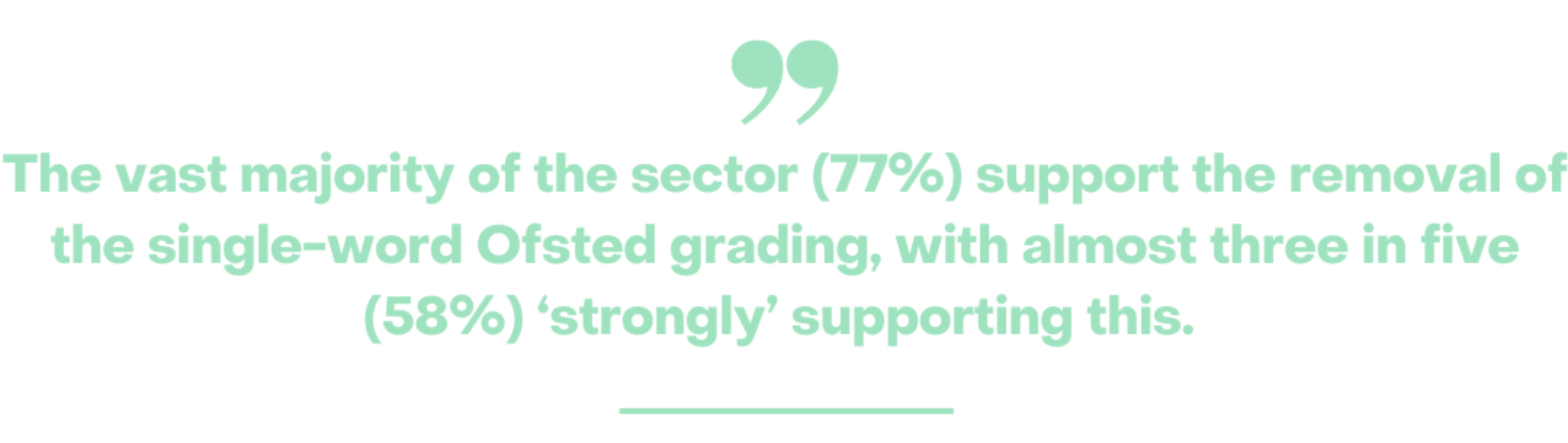 In addition, the majority of providers believe that inspections do not have a positive impact on the provision of quality care and education. Only 14% said the current Ofsted inspection regime has had a positive impact on the provision of quality care and education while 37% ‘strongly disagreed’, and 26% ‘somewhat disagreed’, with the statement.