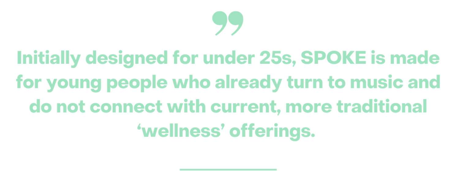 Ariana Alexander-Sefre, Founder and Co-CEO of SPOKE said, “Current methods aren’t appealing enough to young men and many others, if not most, young people today. We believe looking after your mental wellbeing is inspiring and should fit into your lifestyle. It shouldn’t be a chore, it should be as easy as listening to your favourite music.”