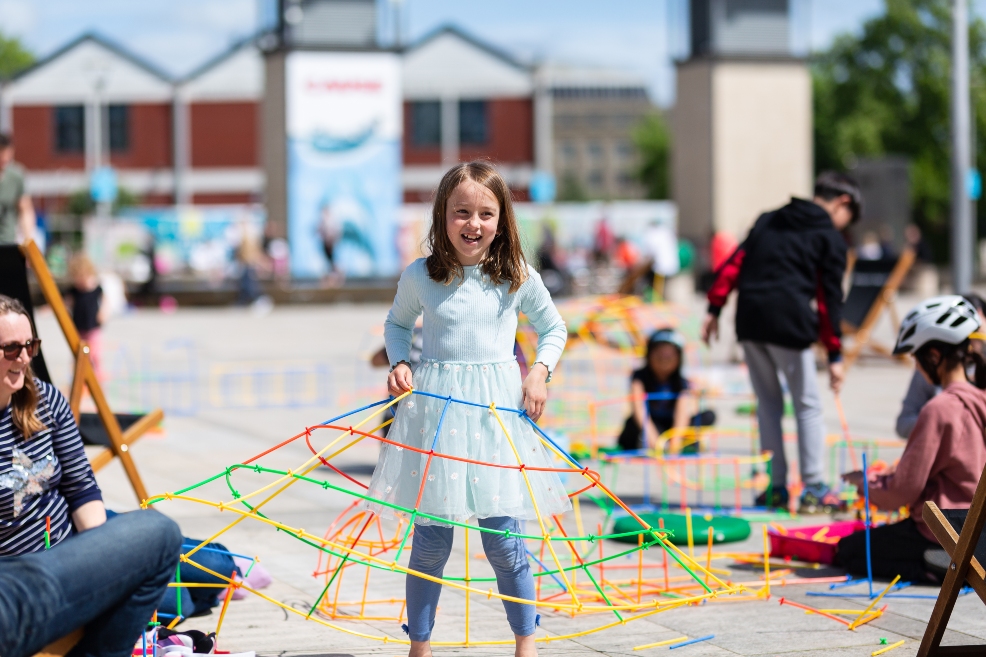 During May Half term We The Curious turned Millennium Square into a giant playground, with hula hoops, skipping ropes, giant Jenga and more, and they’re back over the summer 10 Ways to play which will be popping up at other events around the city.