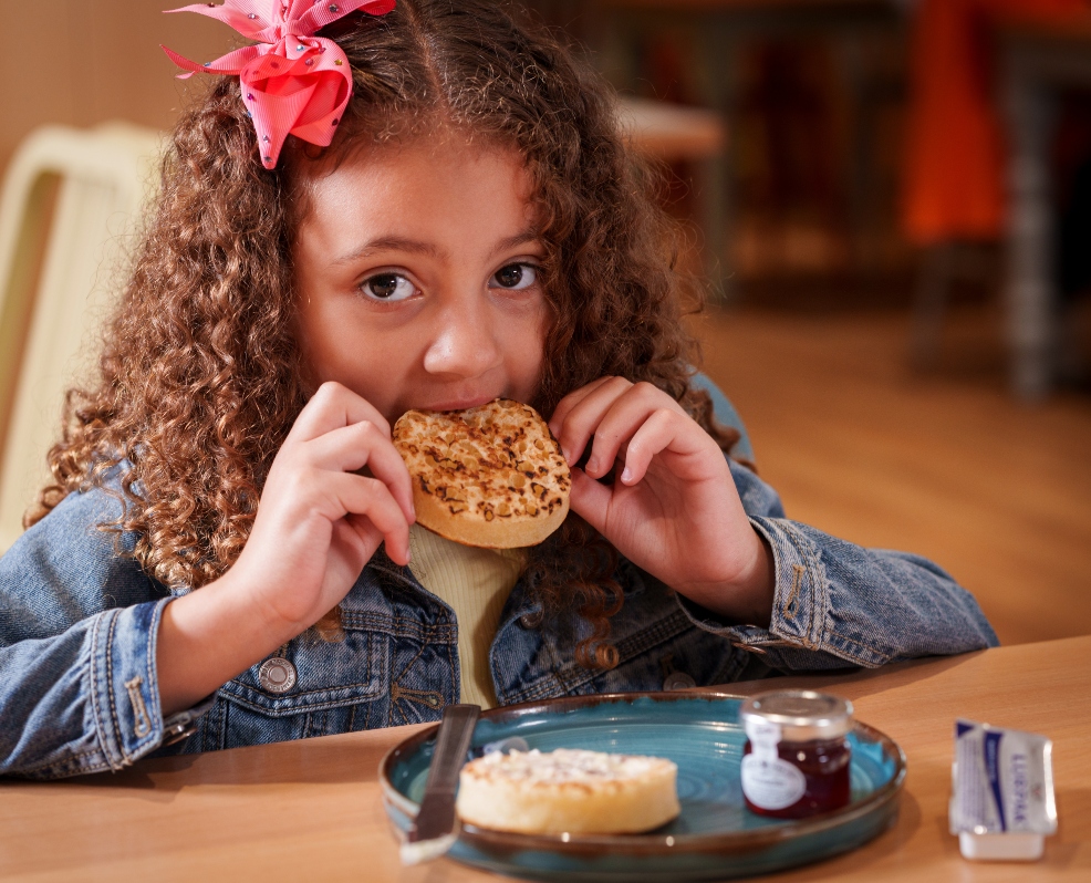 picture of a child having free crumpet at Morrisons cafe With schools starting to close for the long six weeks of summer, Britain’s largest bakery brand, Warburtons, and Morrisons has launched ‘Ask for Ellen’ to give a little support to families throughout the holidays.