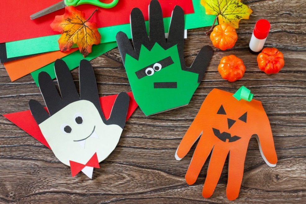 To take this one step further and turn the monsters into Halloween décor, simply attach the handprints together with glue or tape to make a spooky banner!