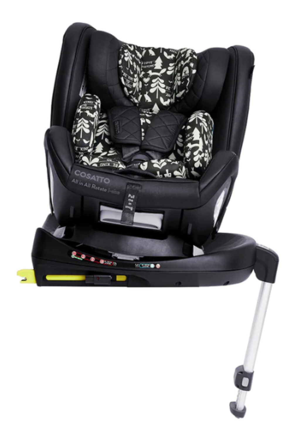 The All Stages Universal i-Size, ISOFIX ERF car seat that rotates for easy access with extra side impact protection. All in All Rotate i-Size is R129 compliant at all stages from 40cm-150cms or birth up to approximately 12 years old. The Side Protection System (SPS) keeps little one protected on every journey with impact-absorbing foam inlay and is enforced by pop-out Side Impact Protection (SIP) wings. It also boasts an adjustable 11 position head rest and had four recline positions in forward facing mode. All in All Rotate i-Size can also be used extended rearward facing up to the height of 105cm, with a smooth and easy rotation. Cosatto’s patented five point plus anti-escape system makes it super secure and safe for little Houdinis.