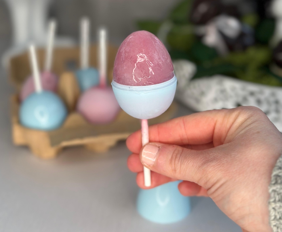 - Ice lolly eggs are a bit different- use an egg box and fill it up with plastic eggs. Use a piping tip to fill them with juice, pop a lolly stick in, and leave them overnight. My kids love these!