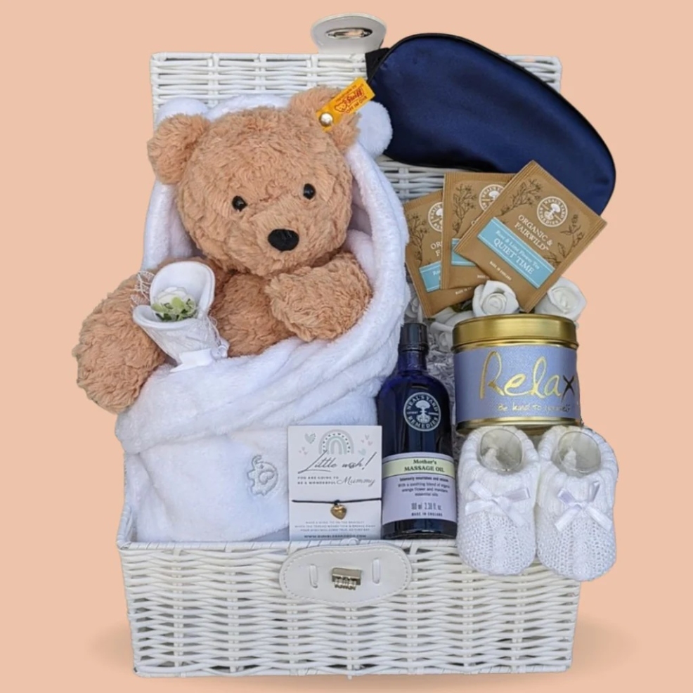 Perfect for when you both need some TLC, this hamper has all the relaxation essentials for a mum and baby pamper night! Treat your mum friend and their new bundle of joy with pampering goodies like a gorgeous teddy bear and cosy dressing gown for baby, and relaxing candles and Neal’s Yard remides for mum so they can sit back, relax and unwind with their little one.