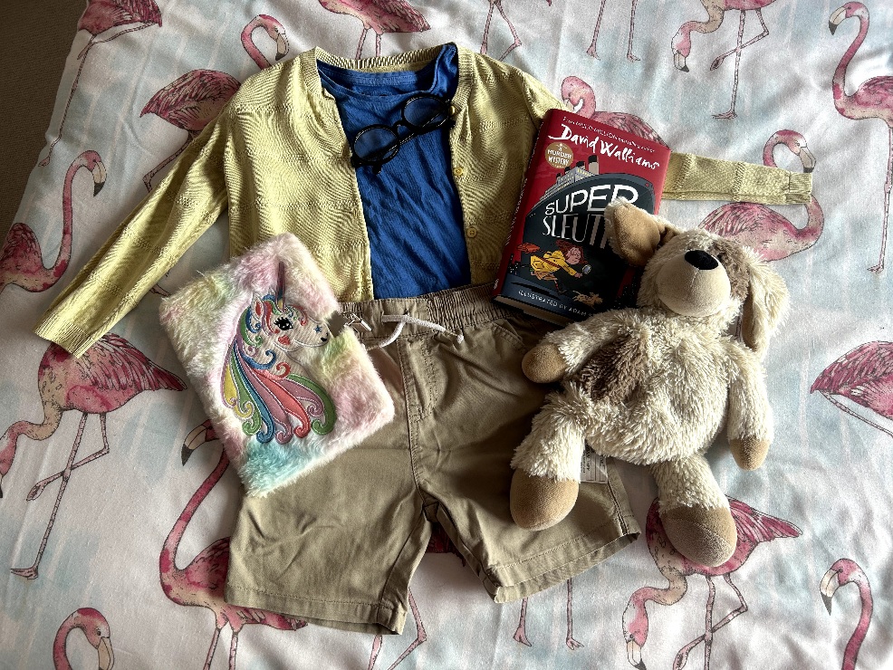 Super Sleuth is one of David Walliams new books and it's one I am currently enjoying reading with my daughter. This is actually her choice of what she will be dressing up for this World Book day. We have looked at all of the pictures of Dilly (the main character) and think we can pull this off with what we already have in her wardrobe. We may have to substitute some of the colours for the various items but I will list the exact colours Dilly wears below.