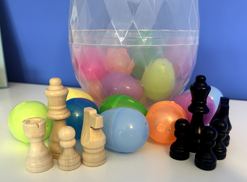 Okay, bear with me on this one – it’s a bit different, but hear me out! If you’re buying your child a new board game, why not hide the pieces in the eggs? It makes the reveal extra exciting. We’ve done this with chess pieces (great for older kids!), but it would also work with games like:
