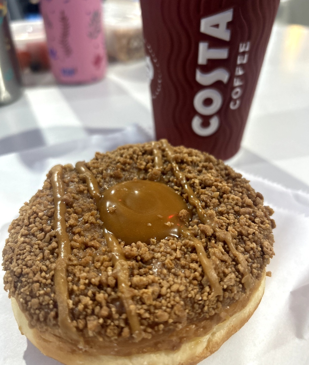 There’s also a little food kiosk serving Costa drinks and sweet treats, which is exactly what we needed after a soggy morning. A hot chocolate and a doughnut really hit the spot!