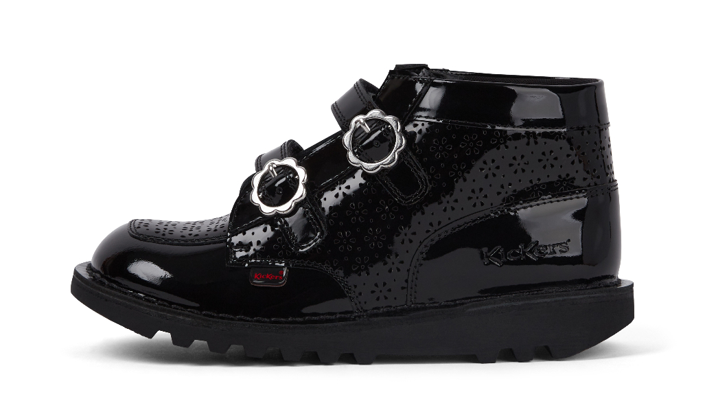 Step into the school year with the Kick T-Bar Meadow - the iconic silhouette, now blooming with subtle floral charm. Glossy patent leather, delicate woven patterns, and silver flower-shaped buckles bring a sweet twist to this timeless classic. Perfect with dresses, tough enough for the playground, and designed with easy fastenings and grippy soles, it’s school style done the Kickers way - smart, sturdy, and full of personality.