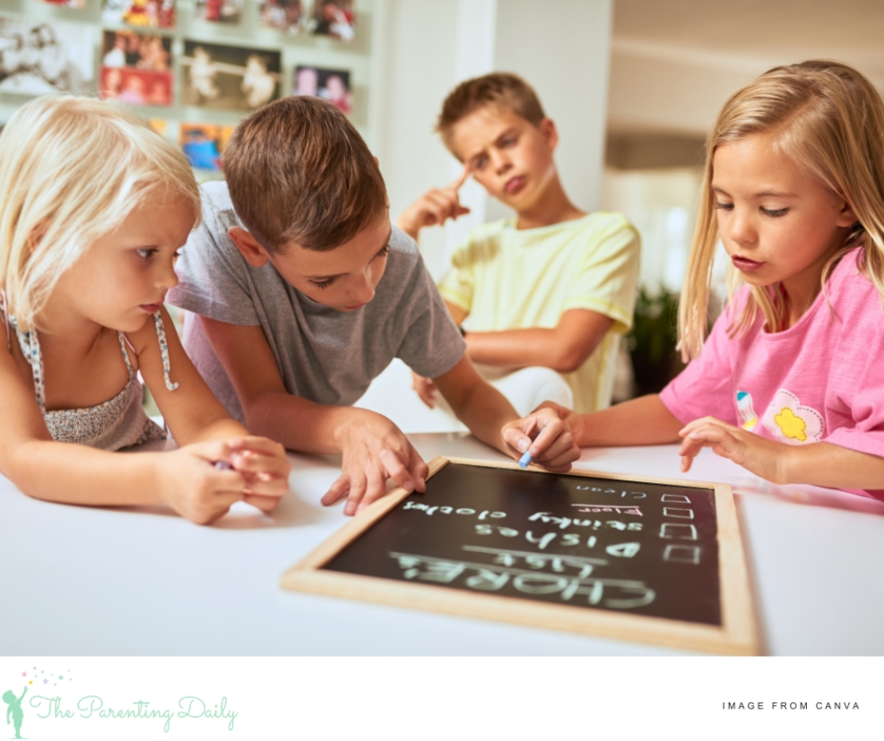 Add colour to your children’s chores to create visual appeal and organisation. Colour coding enhances a child’s memory by encouraging stronger mental associations with particular tasks, and it might also trigger your kids to become more organised with their personal belongings. Try colour coding for specific responsibilities or family members. Perhaps use different coloured sticky notes on each chore that your youngsters can remove and stick on a chore chart once they complete it.