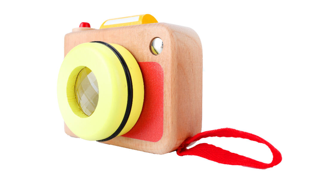 Smile, Camera! Action! See the world through a lens of wonder with this vintage wooden camera. Featuring a kaleidoscope-style viewfinder, it transforms everyday surroundings into a swirl of shapes and colours. Perfect for pretend play, creative storytelling, and encouraging a love of exploring.