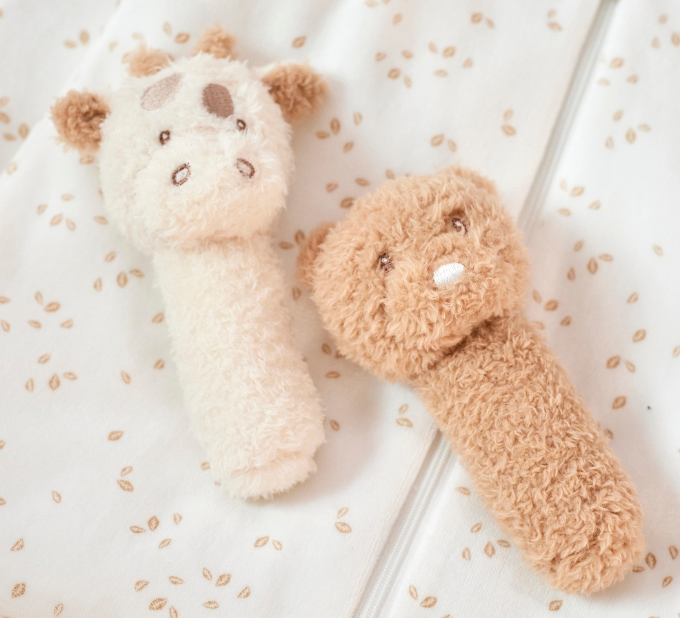These sweet teddy rattles combine soft plush textures with a gentle rattling sound. Lightweight and easy to grip, they provide comfort, sensory stimulation, and a friendly face for little ones to snuggle. A beautiful keepsake for baby’s first Christmas, and a present parents will love too.