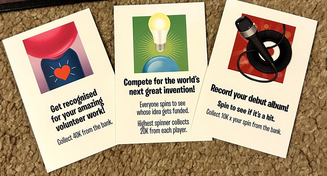 You also have the option to buy property as you go, which you can sell at the end to add to your wealth. This is when the roulette red or black dice come into play, as you have two prices you can sell your house for, depending on which colour you land on. You can either lose money or make more money than you originally bought the house for, which again, I think is a great introduction to real life.