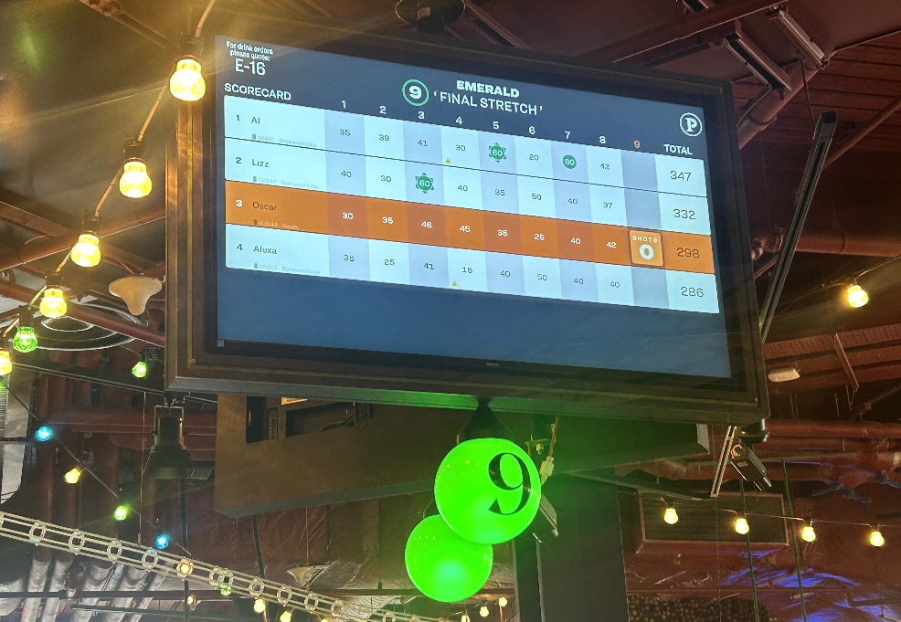 This isn’t your usual mini golf – it’s packed with clever tech! Each golf ball is chipped and linked to your player profile, so the scores are tracked automatically (no more scorecard arguments!). Every course is 9 holes and includes fun challenges, sneaky shortcuts, and chances to win or lose points along the way.