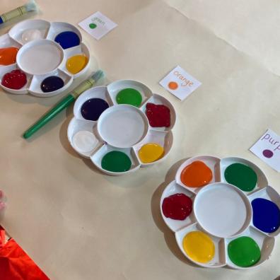 My little girl is learning all about what colours you need to mix to make different colours at the moment, so I thought I would set up a fun painting activity to help her learn.