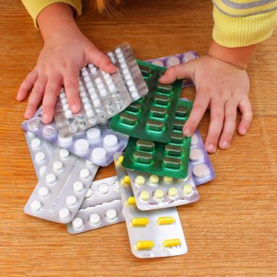 picture of child with packets of medicinal tablets